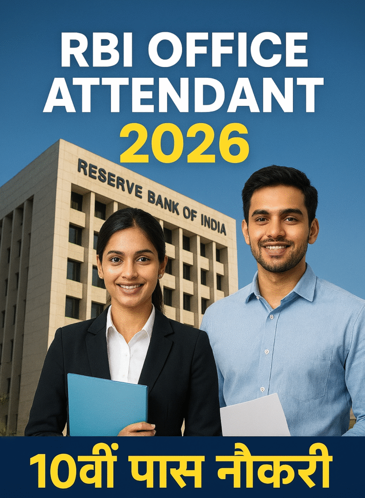 भारतीय रिज़र्व बैंक (RBI) ने Office Attendant (ऑफिस अटेंडेंट) पदों के लिए भर्ती 2026 का आधिकारिक नोटिफिकेशन जारी कर दिया