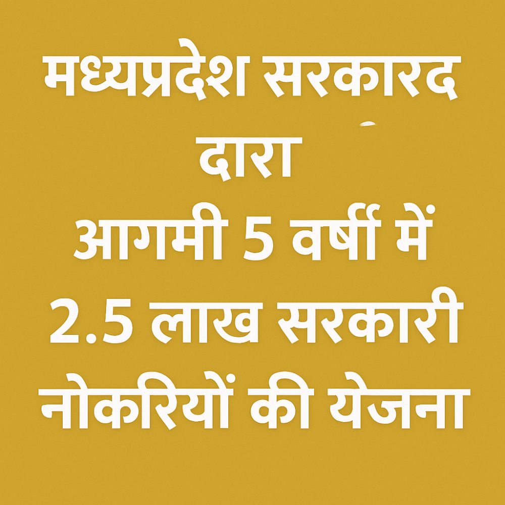 मध्यप्रदेश सरकार द्वारा आगामी 5 वर्षों में 2.5 लाख सरकारी नौकरियों की योजना